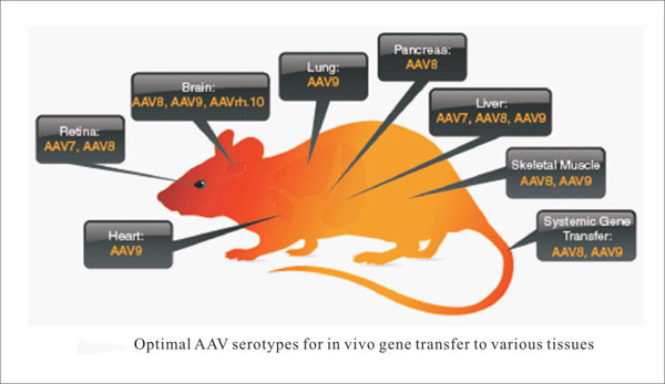 不同AAV血清型對相同的組織和細胞具有不同的感染效率。